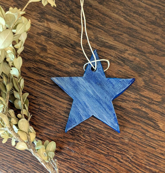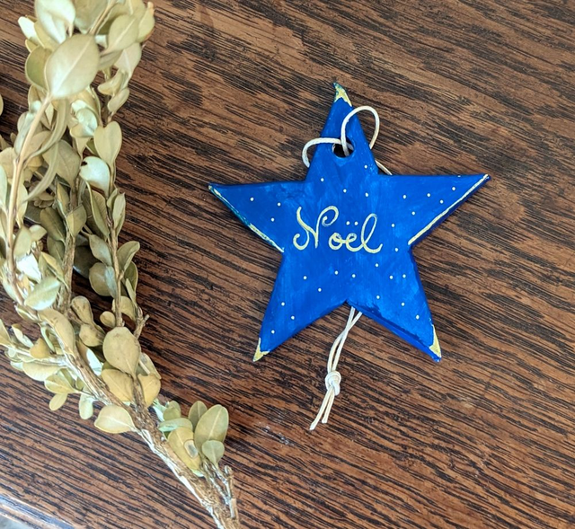 Décoration en céramique pour votre sapin de Noël. Etoile bleue et dorée.