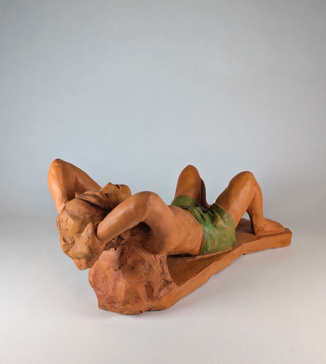 Sculpture céramique modelée à la main, argile rouge cuite et cirée.